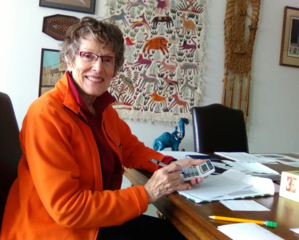 Office folks cheerfully finding info to help in completing our taxes.