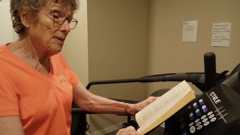 Reading on stationary bike...for many indoor seasons.